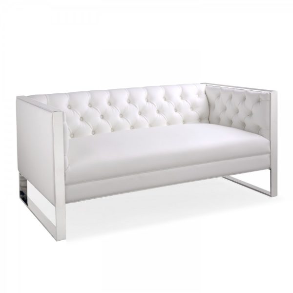 Shankar Empire Square Edge Sofa – Oyster White Leather Look The Empire sofa from Shankar is an ideal choice for home or business and would make a stylish addition to any living area, bedroom, social area, cafe, bar or reception. This modern couch features a polished stainless steel square frame and high quality oyster white leather match upholstery with button detailing. The Empire armchair is available in the same Oyster White shade, making it easy to coordinate seating within this versatile range.