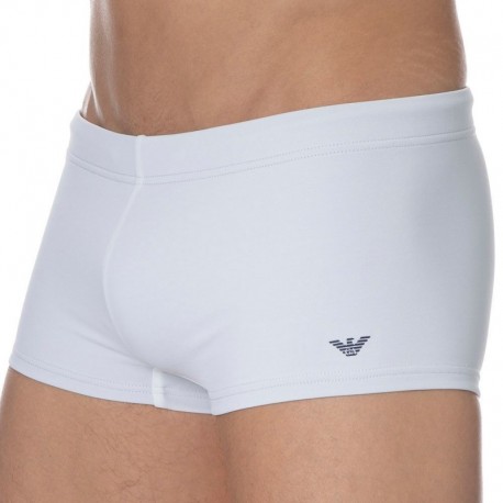 Low-rise swim trunk made from soft, comfortable and quick-drying stretch microfiber. Fully lined. Emporio Armani silicone eagle on the left thigh. Elastic waistband with inner drawstring.