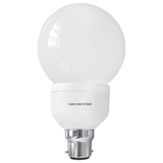 Energy Saving CFL Golfball/ Globe Lamps, 9W Bc/B22/B22d/BA22d (5 Pack)