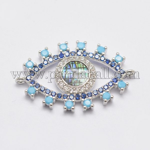 Environmental Brass Cubic Zirconia Links, with Natural Paua Shell, Lead Free & Nickel Free & Cadmium Free, Eye, LightSkyBlue, PlatinumSize: about 30mm wide, 19mm long, 3mm thick, hole: 1mm.