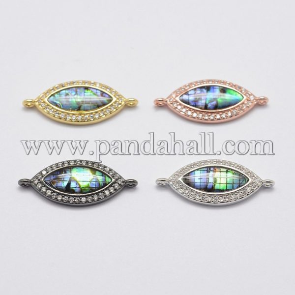 Environmental Brass Cubic Zirconia Links, with Natural Paua Shell, Lead Free & Nickel Free & Cadmium Free, Horse Eye, Clear, Mixed ColorSize: about 25mm wide, 10mm long, 3.5mm thick, hole: 1mm.