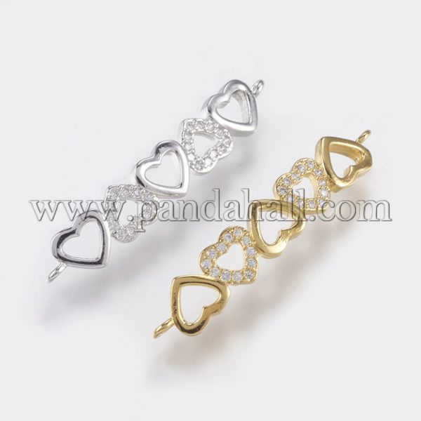 Environmental Brass Micro Pave Cubic Zirconia Links, Clear, Long-Lasting Plated, Heart, Lead Free & Cadmium Free, Mixed ColorSize: about 33mm wide, 6mm long, 2mm thick, hole: 1.4mm.