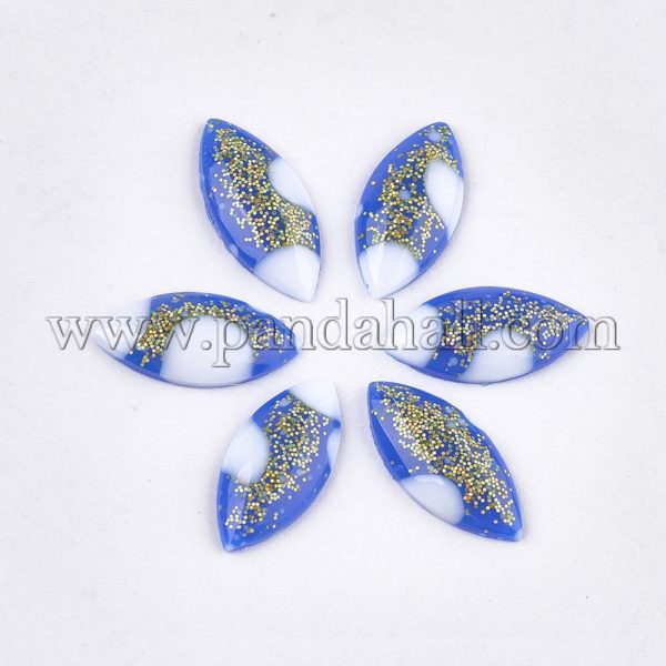 Epoxy Resin Cabochons, with Glitter Powder, Horse Eye, RoyalBlueSize: about 14.5~15mm long, 7mm wide, 2.5mm thick.