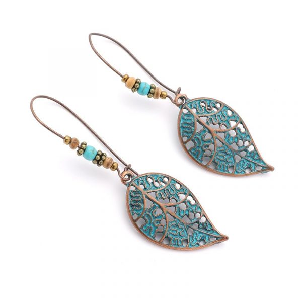 Exaggerated Vintage Hollowed-Out Leaves and Beads Dangling Earrings
