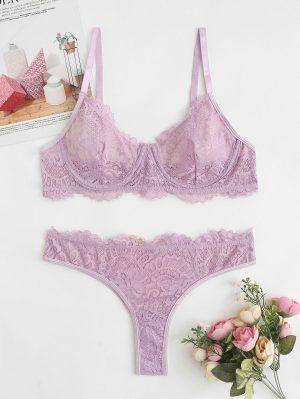 Zaful Crafted from a sheer lace material with eyelash trims, this sexy-charming bra set features supportive underwires and a chic underwire design. Wear it sole to be the ultimate babe. Style: Sexy Materials: Polyester,Polyurethane Bra Style: Unlined Chest Pad: None Pads Cup Shape: Full Cup Support