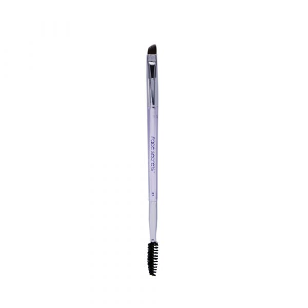 face secrets Fill in your brows with the Double Ended Brow Brush. The angled brush is thin enough to create hair like strokes to achieve a natural look or draw on a dramatic brow. Use the spoolie to blend it all out.