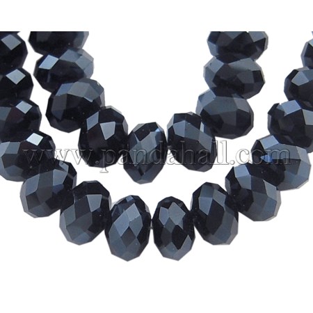 Faceted Rondelle Glass Beads Strands, Pearl Luster Plated, Crystal Suncatcher, for DIY Crafting, BlackSize: about 8mm in diameter, 6mm thick, hole: 1mm; about 68~70pcs/strand, 15″.Fashionable electroplate glass beads make designing jewelry colorful and affordable. Interesting Rondelle shape and rainbow colors add eye-catching appeal for style that sells. Made with solid color glass for long-lasting wear. Show your support by incorporating these into charm bracelets, pendant and earring components and anklets.