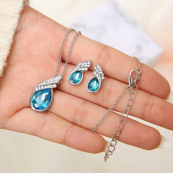 Be the first to review “Fashion Personality Blue Diamond Angel Tear Earrings Necklace Suit Women”