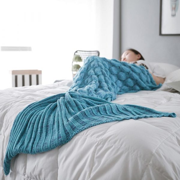 Fish Scale Yarn Knitted Sleeping Bag Mermaid Blanket