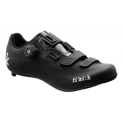 R4B Uomo: fi’zi:k’s range of road cycling shoes is developed in collaboration with leading professional cyclists. The best technologies, materials, R&D, testing and manufacture techniques are used to deliver you the best shoes for road riding and racing, and trickle down throughout the range.Why use BOA?Glove-like fit: it provides custom comfort with smooth, even closure and no pressure points.Powerful closure: once locked into place, BOA reels and laces stay that way.Micro-adjustability: BOA reels offer seemingly infinite degrees of fine tuning.Quick on, quick off: BOA saves time when seconds count.On-the-fly adjustment: get easy, one-handed adjustment with a quick turn of the BOA dial.Durable: made from aircraft grade stainless steel, BOA laces are stronger per gram than tank armour.Lightweight: BOA closures shed water, mud and ice, shaving precious weight.Shoe specification:Adjusting the two straps closest to the toe will alter the fit and distributed pressure around the foot, enhancing comfort and performance.Adjusting the BOA dial will alter the fit of the heel cup around the foot, increasing power transfer and maximising performance.Injection Composite Carbon Outsole, vented to improve its aerodynamicsLaser-perforated Microtex upper (as used on fi’zi:k saddle covers: lighter than leather, very durable, good in wet conditions, breathable and cleans up well).BOA IP1 and Micro Straps closure system (tri-modal: tighten, loosen and complete release)Neutral fit to accommodate the majority of foot shapesVolume: fully adjustable down to the toe using BOA and Micro Straps closure systemFi’zi:k Cycling InsoleWeight: 254g (size 42.5)