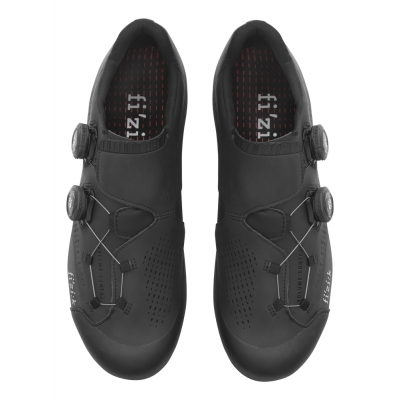 With perfect fit, class-leading comfort, lightweight trail protection and unmatched power transfer, the Infinito X1 MTB cycling shoe delivers ultimate cross-country race and trail riding performance. The new Infinito Closure System, its strong, stiff sole, weight-saving materials and the intelligent implementation of new technology combine to make the very best high performance mountain bike shoe.The Infinito Closure System uses two micro-adjustable double Boa IP1-B dials running laces in an infinite configuration that adjusts the fit of the upper on the forefoot and through textile guides that eliminate pressure points. It works with fi’zi:k’s Dynamic Arch Support technology and the Increased Volume Control system, to shape the whole shoe’s 1.4mm thick Laser Perforated Microtex upper directly around the foot’s profile. The protective upper harmonises with the new mesh footbed insole’s improved ventilation and comfort. Its laterally stiff, light, Uni Direction Full Carbon Outsole is ventilated and delivers ultimate power transfer for XC and trail performance. Pronounced treads on the heel edge and toe sections allow for mud clearance around the cleat recess and provide grip and protection on any riding surface, further enhanced by detachable cyclocross-style rubber studs.Infinito X1 is fi’zi:k’s range-topping MTB shoe, and benefits from the latest technologies, materials and improved design based on feedback and input from some of the world’s leading pro riders. Infinito X1: the ultimate cross-country race and trail riding performance shoe.Volume control – the lower Boa controls toe box volume. The offset position means the front of the shoe wraps across the foot making it much more adaptable to different foot shapes.Dynamic arch support – the lower Boa also moulds the shoe to support the arch of the foot. The top Boa is then used to tighten the shoe to the foot.Heel gripper on the inside of the shoe.Why use BOA?Glove-like fit: it provides custom comfort with smooth, even closure and no pressure points.Powerful closure: once locked into place, BOA reels and laces stay that way.Micro-adjustability: BOA reels offer seemingly infinite degrees of fine tuning.Quick on, quick off: BOA saves time when seconds count.On-the-fly adjustment: get easy, one-handed adjustment with a quick turn of the BOA dial.Durable: made from aircraft grade stainless steel, BOA laces are stronger per gram than tank armour.Lightweight: BOA closures shed water, mud and ice, shaving precious weight.Shoe specification:Adjusting the Boa closest to the toe will alter the fit and distributed pressure around the foot, enhancing comfort and performance.Adjusting the BOA dial will alter the fit of the heel cup around the foot, increasing power transfer and maximising performance.Full uni directional carbon fibre with rubber tread and toe spike compatibility.Laser perforated mircrotex upperDouble BOA IP1-B closure system (tri-modal: tighten, loosen and complete release)Neutral fit to accommodate the majority of foot shapesVolume control and dynamic arch support to give the ultimate fitFi’zi:k Cycling InsoleWeight: 232g (size 42.5)Colour: Black/black or Grey/red or Grey/yellowSizing – Available in sizes 40-48 with half sizes available