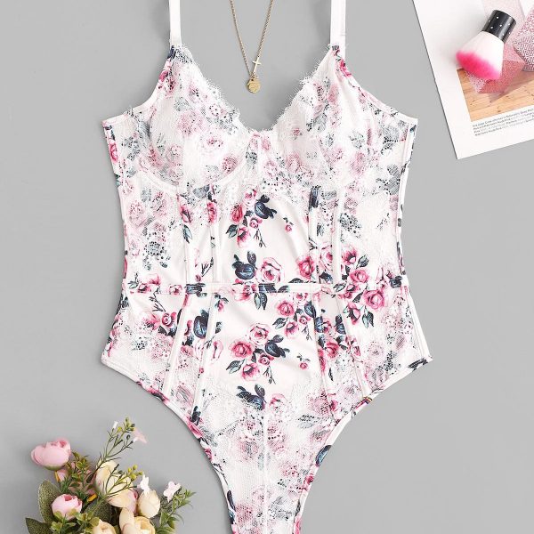 Zaful Crafted in a mix of intricate lace and pretty floral patterns, this bodysuit teddy is a versatile yet charming addition to any closet. Just tuck it into high-rise denim and a crisp blazer for a perfect layering look. Style: Sweet Materials: Cotton,Polyester Bra Style: Unlined Chest Pad: None