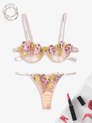 Zaful Update your lingerie collection with this feminine yet sexy set. Featuring an underwire bra and a matching thong, both have embroidered floral, we are totally obsessed. Style this under your fave evening outfit or dare to bare all and wear this set solo. Style: Sexy Materials: Polyester,Polyu