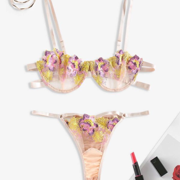 Zaful Update your lingerie collection with this feminine yet sexy set. Featuring an underwire bra and a matching thong, both have embroidered floral, we are totally obsessed. Style this under your fave evening outfit or dare to bare all and wear this set solo. Style: Sexy Materials: Polyester,Polyu