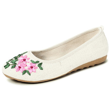 Flower Leaf Flax Breathable Vintage Light Slip On Flat Shoes