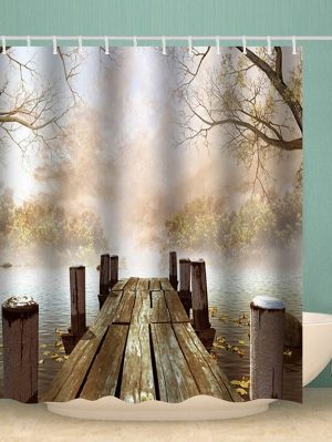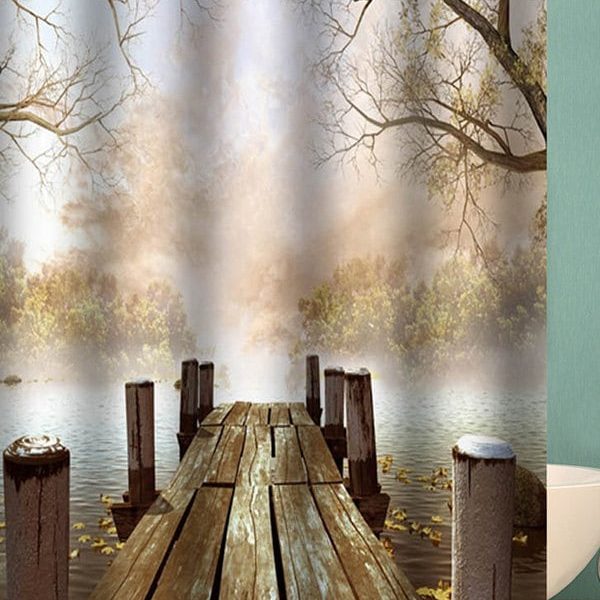 Forest Lakeside Bridge Print Waterproof Bathroom Shower Curtain