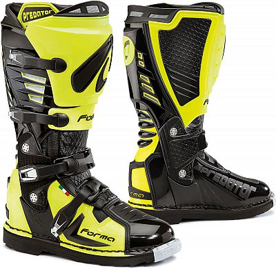 Micro Fiber and synthetic material upper Dual Pivot Flex Control System with anti-scratch pad Carbon Fiber Dual Pivot connector Forma Pro motocross sole Hi-Tec Rubber Heat Gripper inserts Injection moulded plastic protection Adjustable Strap and Velcro closure Unbreakable Alloy security lock buckles Zama moulded toe caps Personalised and thermoformed Forma inner lining ISS Mid sole (incorporated Steel Shank) Anti-bacterial replaceable footbed High quality European production