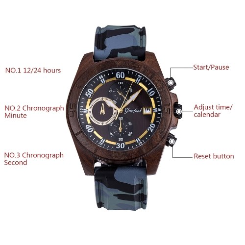 GEZFEEL Waterproof Sport Watch Chronograph Date Clock Silica Gel Strap Wrist Retro Watch Multifunction Luminous Quartz Wristwatch Men