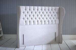 The Giovana chesterfield wing floor standing headboard fits perfectly with a selection of stylish divan and adjustable beds. Made with sturdy chipboard, the headboard is strong and has a thick layer of hard wearing foam which makes it comfortable to lean against if you want to sit up in bed. Made in the UK with a wide selection of fabrics and colours to choose from you will be sure to find the colour that suits you.