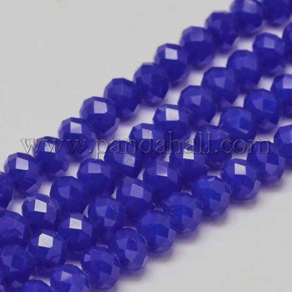 Glass Beads Strands, Faceted Rondelle , BlueSize: about 8mm in diameter, 6mm thick, hole: 1mm; about 70pcs/strand, 15.5″.