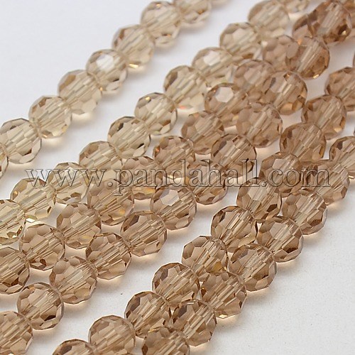 Glass Beads Strands, Faceted, Round, BurlyWoodSize: about 4mm in diameter, hole: 1mm; about 98pcs/strand, 13.7″.Glass beads with faceted sections are shining and fascinating. Its transparent appearance is full of beauty of pure and simple. Glass beads alaways give people a feel of elegant and exquisite. It can be matched with hooks, jumprings, and pins to be necklaces, bracelets and so on.