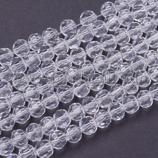 Glass Beads Strands, Faceted, Round, Clear, 6mm, Hole: 1mm; about 98~100pcs/strand, 21.5″