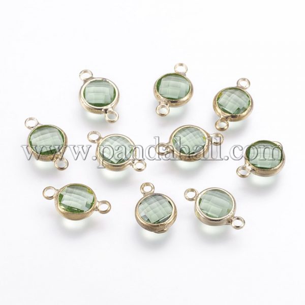 Be the first to review “Glass Links/Connectors, with Light Gold Tone Brass Findings, Faceted, Flat Round, DarkSeaGreen, 14×8.5×3.5mm, Hole: 2mm”