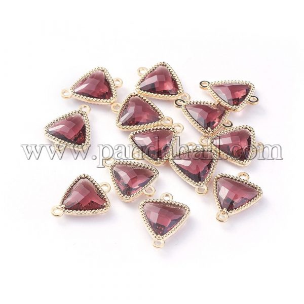 Glass Links, with Environmental Alloy Open Back Berzel Findings, Faceted, Triangle, Light Gold, PurpleSize: about 12mm wide, 16mm long, 4.5mm thick, hole: 1.2mm.