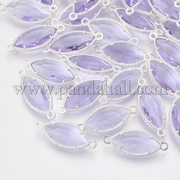 Glass Links, with Silver Plated Environmental Alloy Findings, Faceted, Horse Eye, LilacSize: about 21mm long, 9mm wide, 4mm thick, hole: 1.2mm.