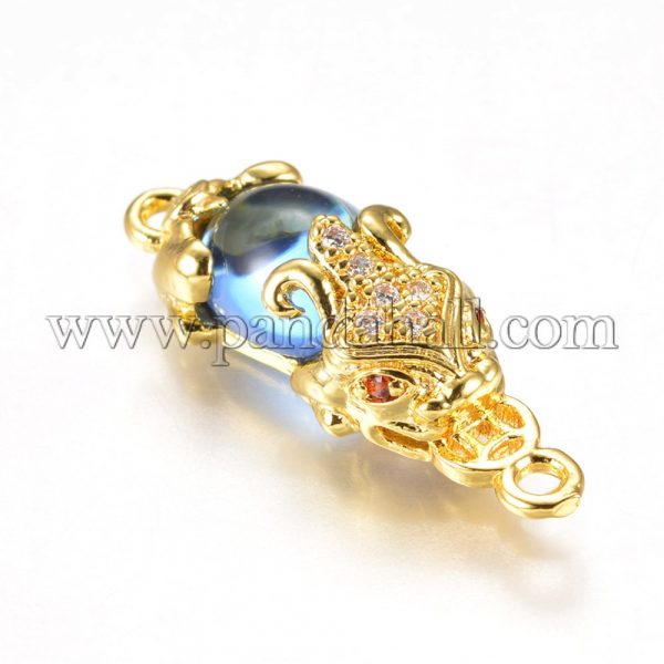 Golden Tone Brass Links, with Glass and Cubic Zirconia, Pi Xiu, SkyBlueSize: about 9mm wide, 27mm long, 7mm thick, hole: 1mm.