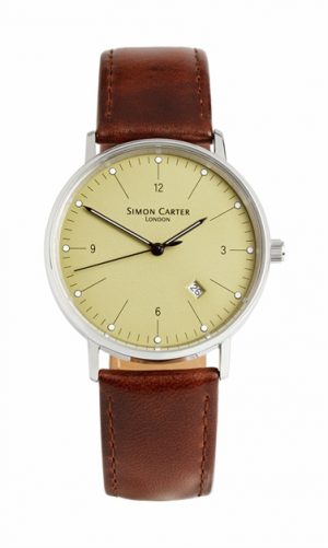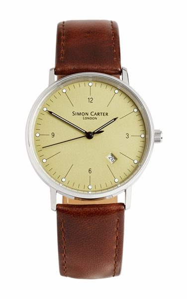 WT2201G. Understated watch with subdued ‘lichen’ coloured face, discreet numerals and bevelled inset date window. 37mm diameter by 7. 5mm deep. 5 ATM. Genuine leather padded strap