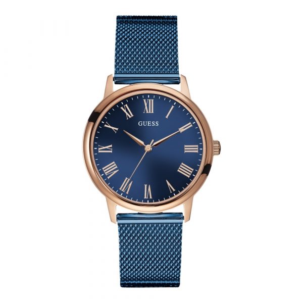 Item Shape – Round Dial Window Material Type – Mineral Crystal Display Type – Analogue Clasp Type – Fold Over Clasp Case Material – Rose Gold Tone Stainless Steel Case Diameter – 40 millimetres Case Thickness – 9 millimetres Band Material – Stainless Steel Mesh Band Length – Mens Band Colour – Blue Dial Colour – Blue Water Pressure Resistance – 30M Warranty Type – Manufacturer Warranty Description – 2 Years This gents Wafer watch has a round blue dial with rose coloured roman numerals, rose gold tone case on a blue stainless steel mesh strap. The timepiece has a quartz movement, which is water resistant.