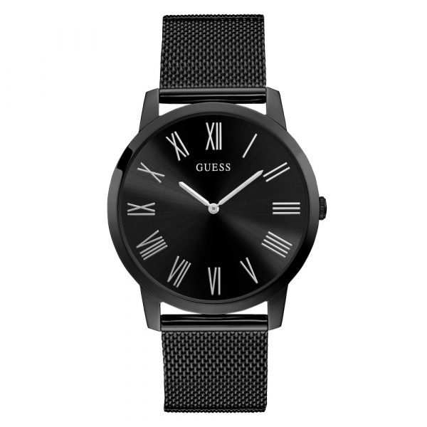 Item Shape – Round Dial Window Material Type – Mineral Crystal Display Type – Analogue Clasp Type – Fold Over Clasp Case Material – Black Stainless Steel Case Diameter – 40 millimetres Case Thickness – 10 millimetres Band Material – Stainless Steel Mesh Band Length – Mens Band Colour – Black Dial Colour – Black Special Features – Milanese Mesh Strap Water Pressure Resistance – 30M Warranty Type – Manufacturer Warranty Description – 2 Years Gents watch featuring a black case with sunray black roman numeral dial and a black mesh bracelet.