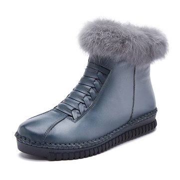 Handmade Stitching Pure Color Zipper Warm Ankle Boots