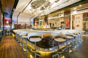 Legendary Burger: 8oz Burger topped with bacon, cheddar cheese, a fried onion-ring and served with seasoned fries
