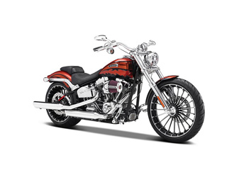 This Harley Davidson CVO Breakout (2014) Diecast Model Motorcycle is Copper and features working stand, steering, wheels. It is made by Maisto and is 1:12 scale (approx. 18cm / 7.1in long).
