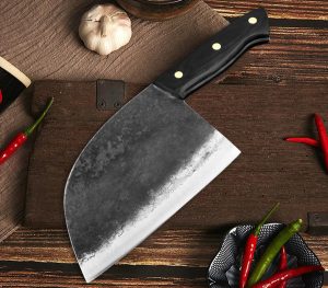 This knife is hand forged by experienced craftsmen. Selecting high-quality steel for high temperature hardening and repeated forging, the steps are numerous and the process is extraordinary. This makes the life of the knife longer. The knife is sharp and durable. The back is thick and has high hardness. The full tang handle is reinforced by three rivets, the handle is not easy to fall off, and it is not tired after long-term use. Ergonomic handle.