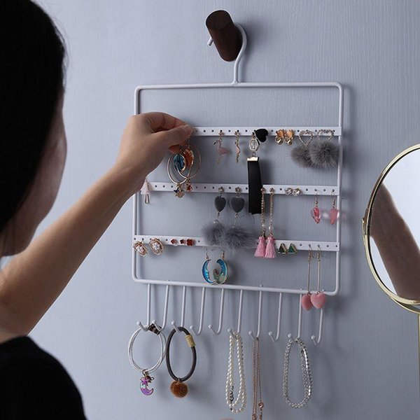 Hooks & Rails Metal Jewelry Rack Holder Organizer 4 Tier Pink White Necklace Earring Display Show Home Deco Shelves Storage Shelf CL92313