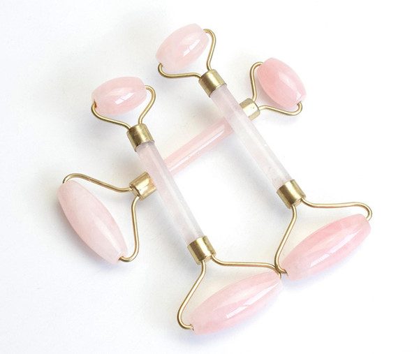 Natural Tumbled Chakra Rose Quartz Carved Reiki Crystal Healing Gua Sha Beauty Roller Facial Massor Stick with Alloy Gold-Plated