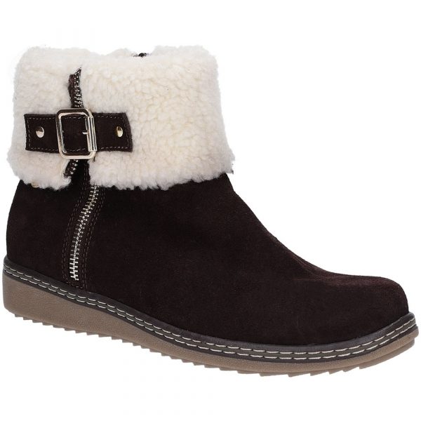 Keep your feet cosy and warm against the harsh winter temperatures with the Hush Puppies Maltese ankle boots. A comfortable faux fur collar helps to insulate and keep heat inside while a water resistant suede upper helps to keep the elements out when the weather turns and a cushioned memory foam insole is ideal for maintaining support throughout your day., Water Resistant Suede., Cushion Comfort Memory Foam Insole., Functioning inside zip., Cosy faux fur lining., Side buckle detail.