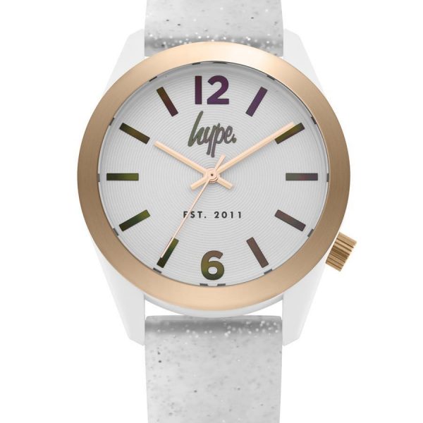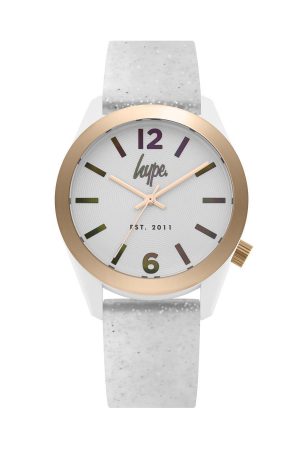Designed with the importance of making a statement with your accessory choice. Colour White Pattern Glitter Gender Unisex Closure Type Tang Buckle Care Instructions Wipe Clean Only Dimensions case w-3mm h-3mm band width 21mm Model Name GLITTER | Hype White Glitter Watch