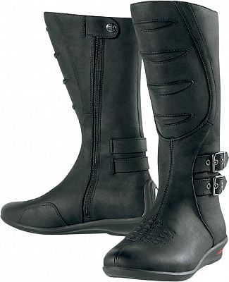 Some ladies prefer their boots on the taller side. Mid-calf height, providing extra leather coverage while keeping jaws dropping. If your game is moto mixed with sexy than look no further than the Icon Sacred Talls.