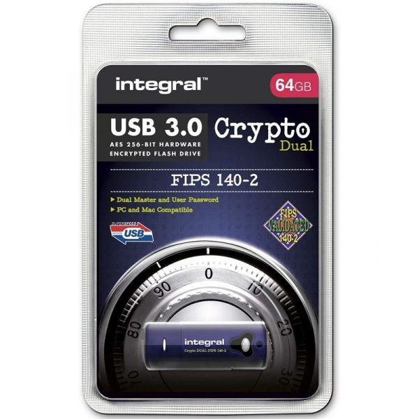 Integral 64GB Crypto Dual FIPS 140-2 Encrypted USB 3.0 Flash Drive – 145MB/s