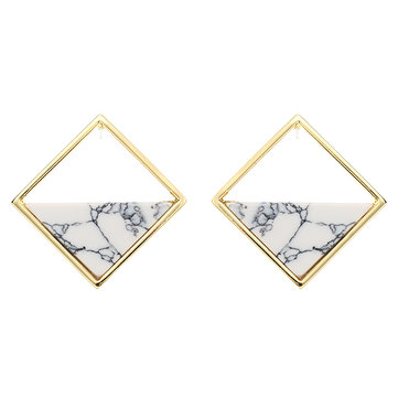 JASSY Trendy Geometric Hollow Rhombus Gold Plated White Marbled Stone Stud Earrings Women Jewelry