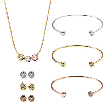 JASSY® Jewelry Set 3 Color Simple Gemstone 18K Gold Plated Chain Necklace 3 Bracelet 3 Earring
