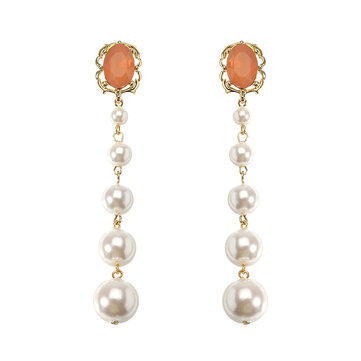 JASSY® Retro Pearl 18K Gold Plated Ear Drop Elegant Orange Opal Women’s Long Earrings