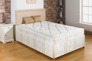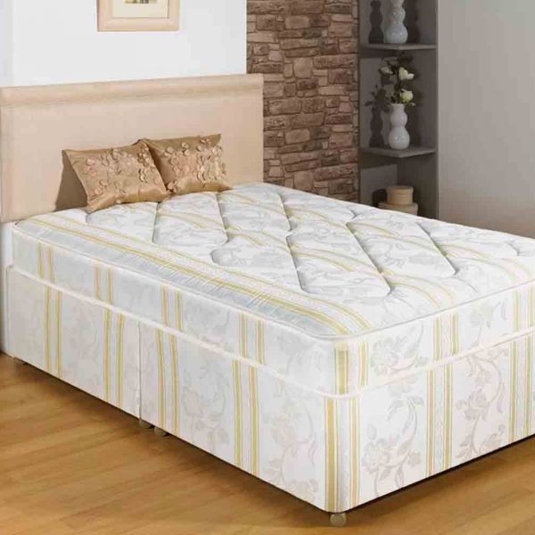 This orthopaedic mattress is similar to the Pace but is more deeply and firmly padded. Constructed from a stiff open coil spring system and a exquisite woven cover, the Gold Stripe provides extra firmness to relieve those restless night’s. The Gold Stripe features a gorgeous, classically patterned and hard-wearing damask cover. The matching divan base comes with end or side storage in any combination.