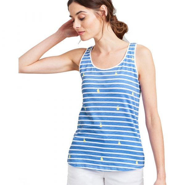 Reach for this floral printed vest top when the weather outside is shining it is made of soft cotton which is comfortable against the skin. The curved hem offers a flattering fit whilst the colourful printed design is eye catching and will brighten up any outfit., Classic style., Curved hem., Relaxed fit., Printed.