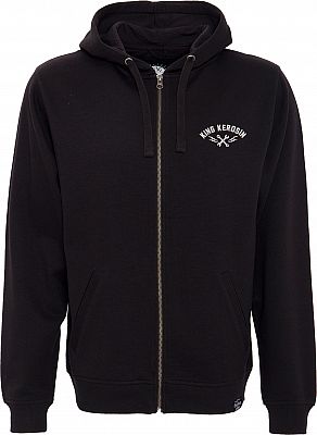 The hooded jacket by King Kerosin comes with an authentic back print in biker look! The soft sweat blend cotton blend is super comfortable and meets all the requirements of an uncomplicated casual look. Sporty details such as the elastic ribbed cuffs, the metal zip and the wide cords complete the sporty style. The logo embroidery on the chest and the small label on the hem set additional accents. Thus, the King Kerosin hoodie is an indispensable basic for the leisure – not just for motorcycle fans. Features