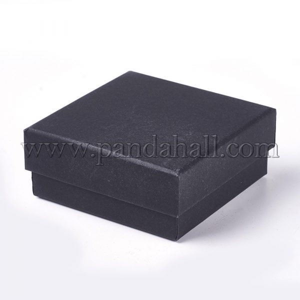 Kraft Paper Cardboard Jewelry Boxes, Ring/Earring Box, Square, BlackSize: about 8.5cm wide, 8.5cm long, 3.5cm high.